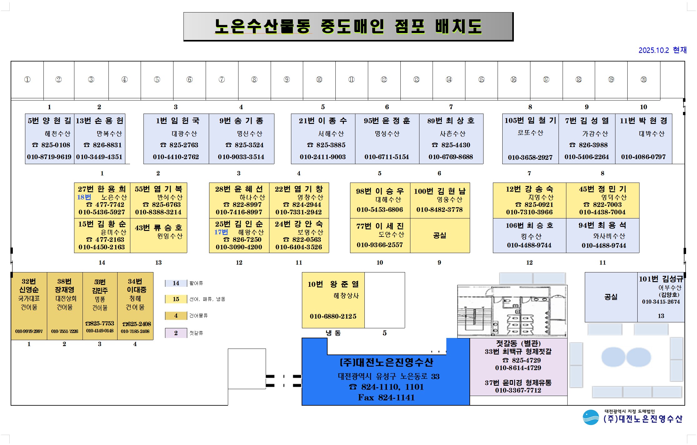 ☎ 갯마을: 825-1788 노은도매유통-(주)대지 477-8282